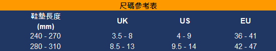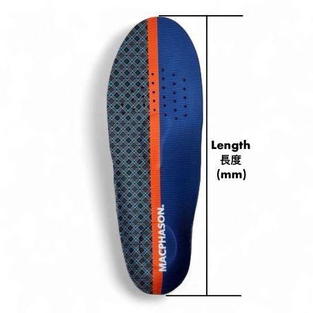 在您選擇我們的鞋墊尺碼之前,我們建議您先從您的運動鞋鞋墊的最頂點到最低點量度長度(i.e., mm),再根據得出來的長度從下圖選擇尺碼。如果你量度的長度是介乎於我們鞋墊的兩個尺碼之間,請選擇較大的尺碼為佳。